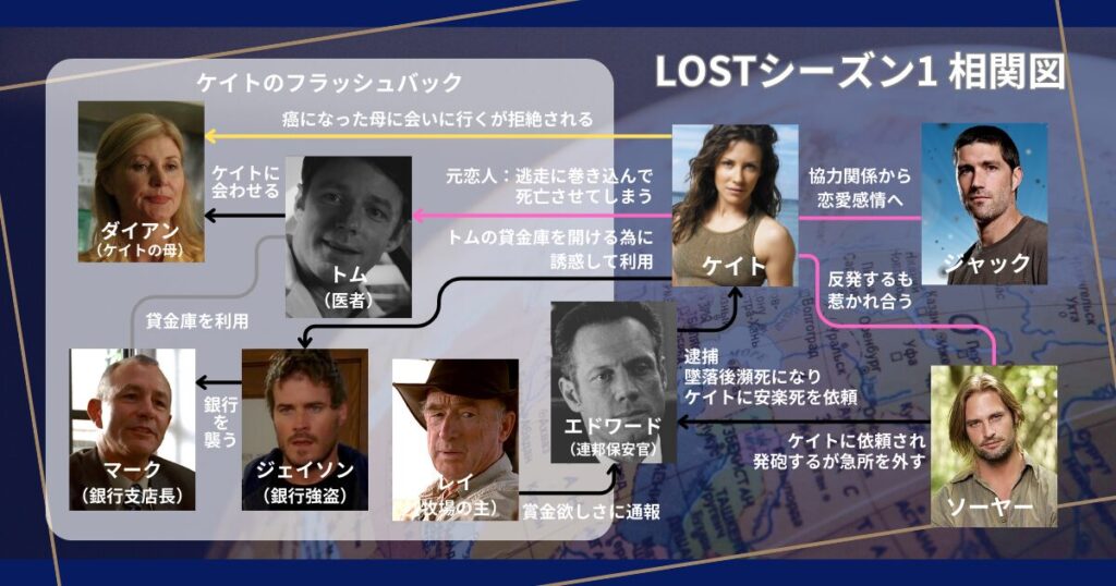 - ケイトの罪と過去が生存者全体に知られる