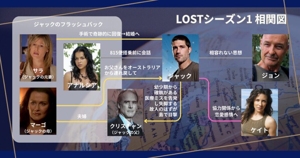 - ジャックとロックの対立構造:理性(科学)と信仰(運命)の対立は、物語全体の軸です。