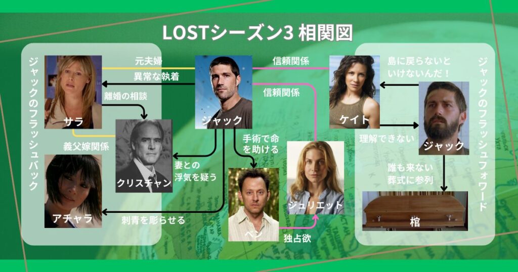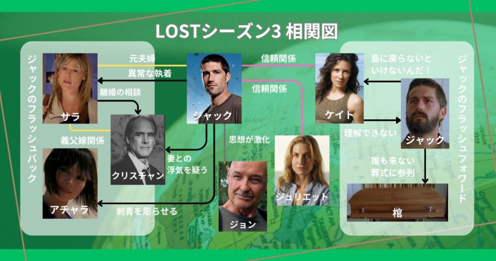 このフラッシュバックは、ジャックの「コントロール欲」と「執着」が、島に来る以前から彼を縛っていたことを明確に示している。