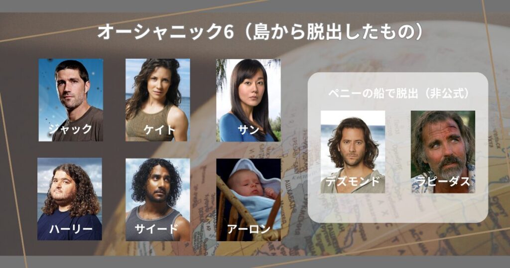 最終的に島を脱出できたのは以下の8人。オーシャニック航空815便の生存者としては6人だ。