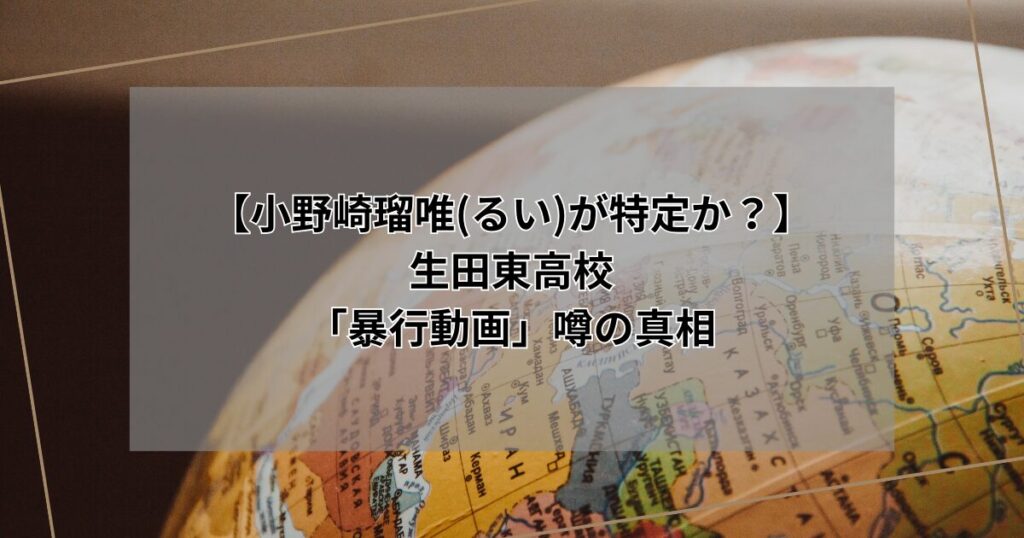 2月初旬、SNSを中心に拡散された暴行動画が大きな話題になっています。投稿には「生田東高校の名前」「小野崎瑠唯(おのざきるい)」という名前が書かれ、ネット上では怒りの声や疑問が飛び交いました。 しかし――これらの情報が公式に確認された事実かどう... -